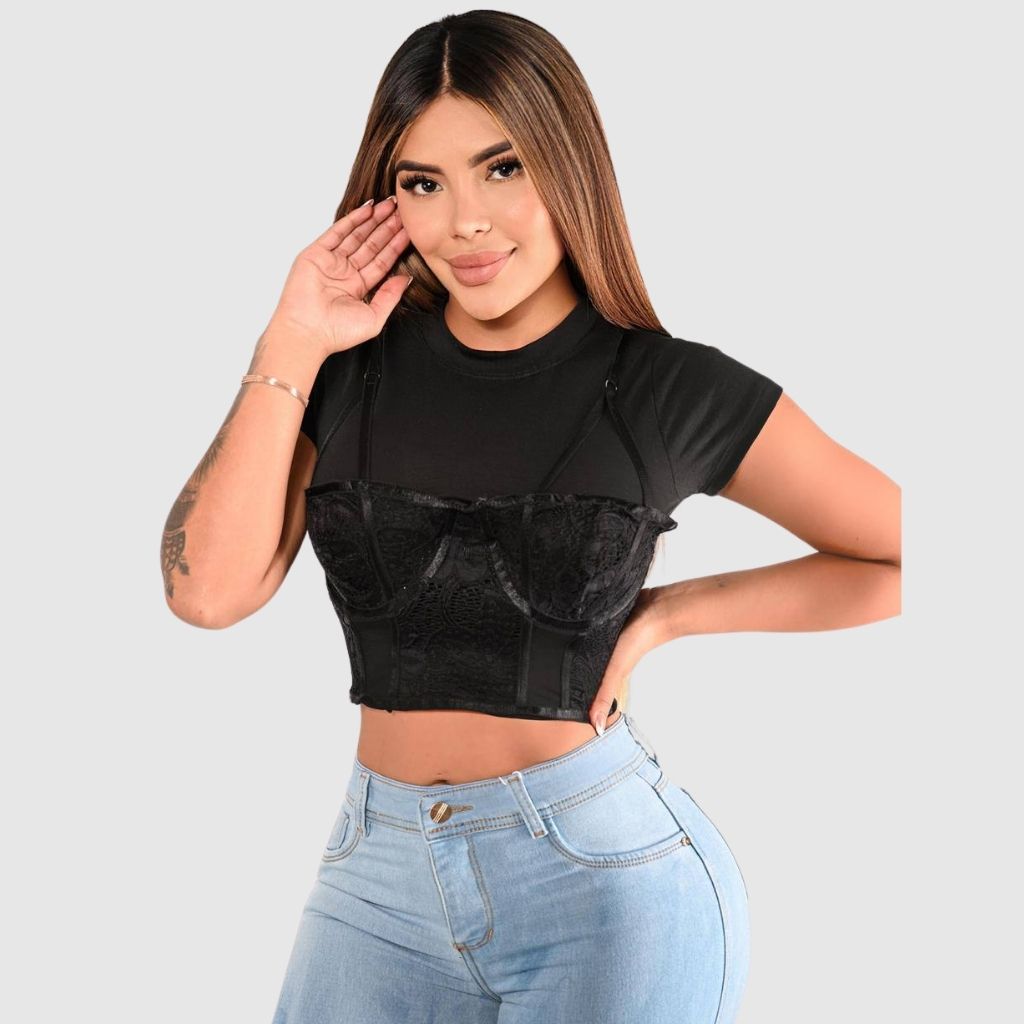 • 👑 Diseño tipo corset con copas marcadas son dos blusas